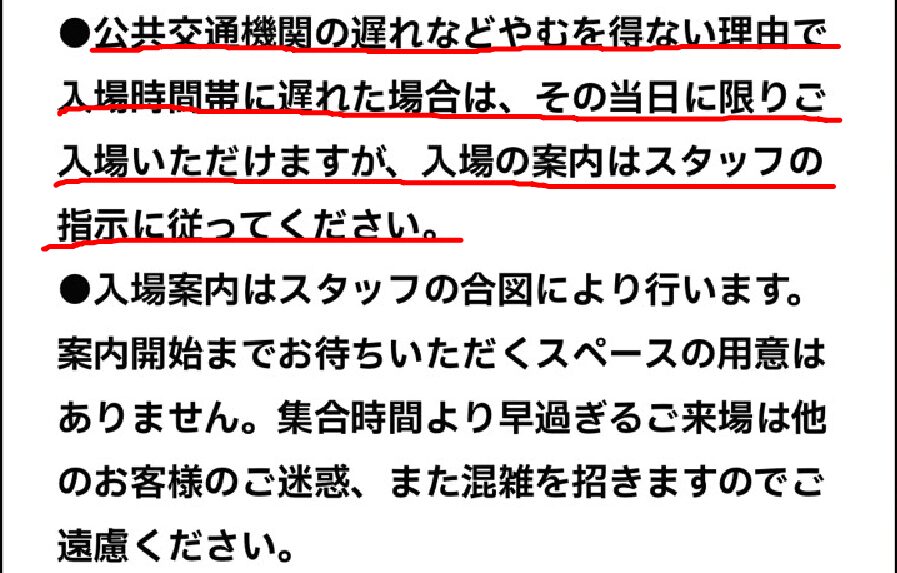 写真を撮り、入り口のスタッフの方に飛行機の遅延で遅れてしまったことを説明。 笑顔で対応していただき、すんなり中に入る事ができました。 良かった〜〜!!!